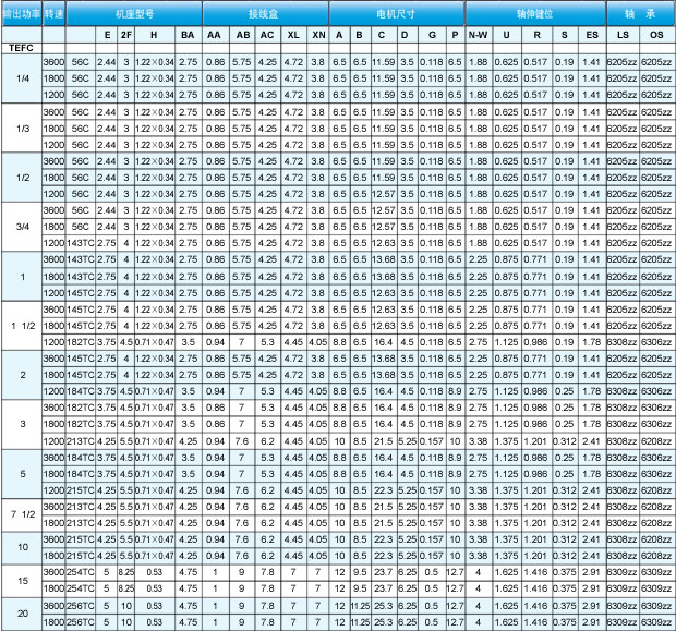 該系列電機為全封閉三相鼠籠式異步電動機。電氣性能及安裝尺寸均符合美國電氣制造商協會標準MG1-1998的相關標準,采用F級絕緣,尼馬 C或B設計。效率達到美國EPACT'92及NRCan的效率要求。機座號從56至250,功率等級從1 / 4到20HP的產品已獲得CSA(“C”及“US”)。證書號為:1414458。該型電機的軸、機殼、端蓋、螺釘等結構部件均采用不銹鋼材料。外型美觀光亮,抗腐蝕 ,無鐵銹、清潔衛生。可廣泛應用于食品,化工等行業。